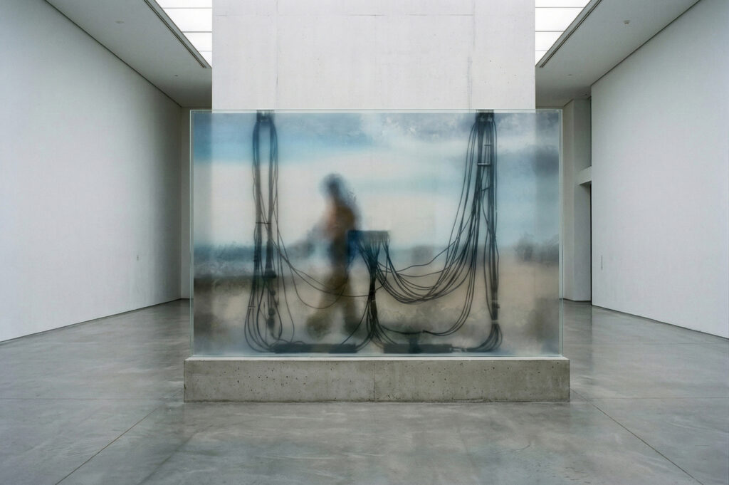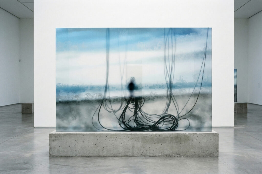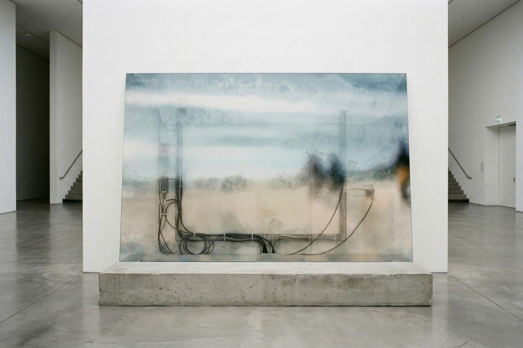 Amers 04/2011 Infinite landscape, Painting Peinture sur verre, cables et béton anonymous landscape sea beach