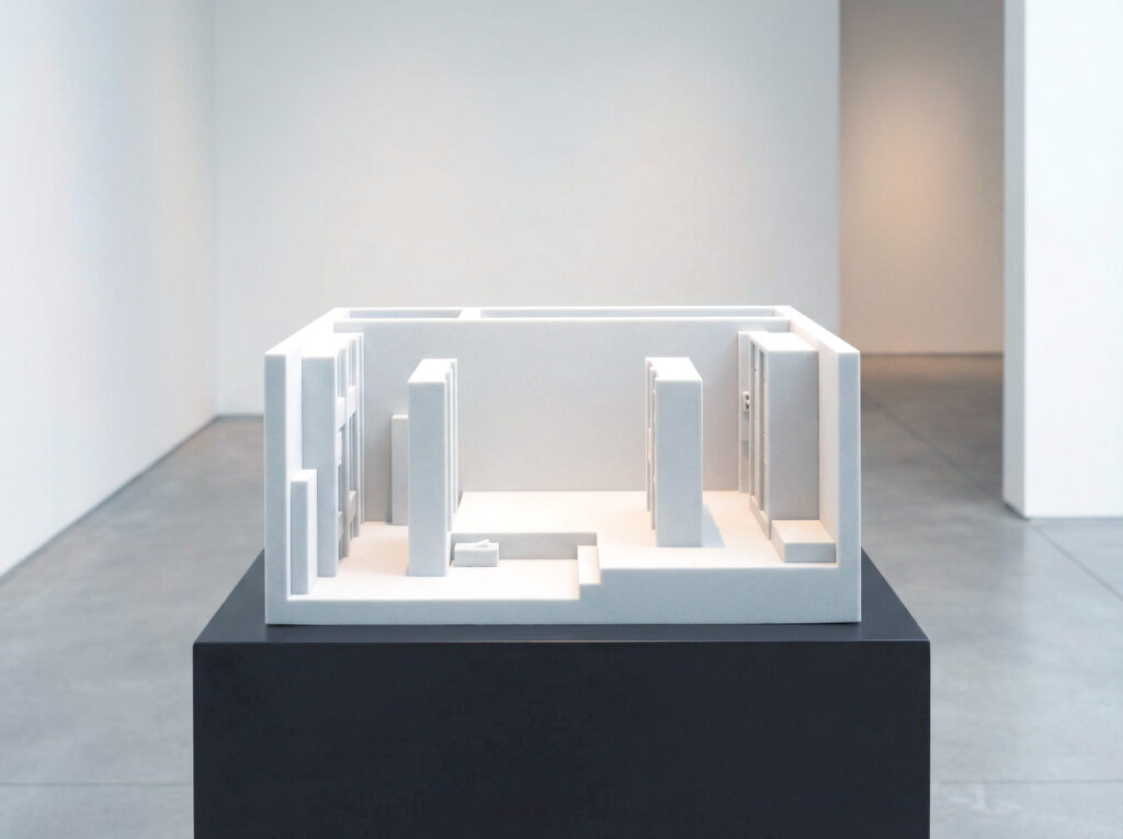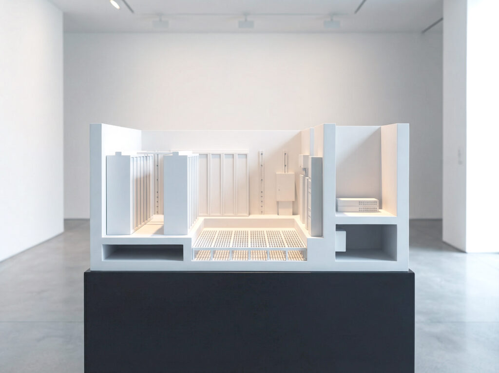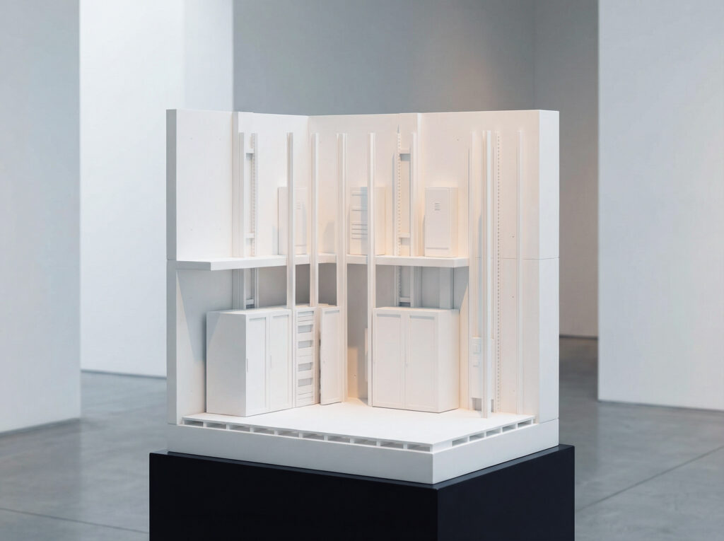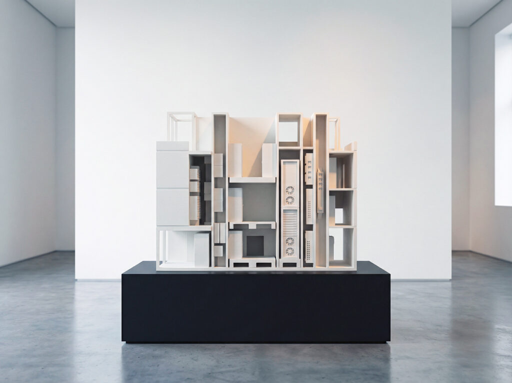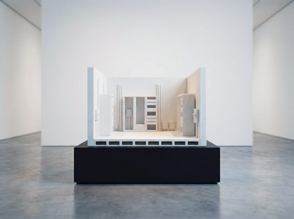 The Black Box in White Cube Ideology 09/2025 Artificial imagination, Sculpture Images générées transformées en impressions 3DDimensions variables