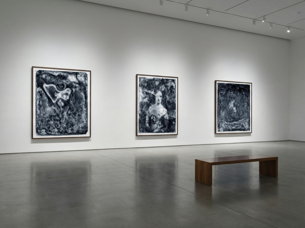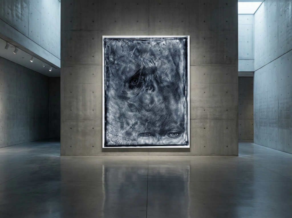 L’artiste a développé un processus utilisant l’intelligence artificielle pour analyser ces portraits endommagés et générer plusieurs hypothèses de reconstitution pour les zones manquantes. Les visages ainsi complétés, à la fois fidèles et réinventés, oscillent entre authenticité historique et spéculation contemporaine.