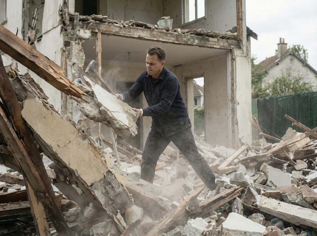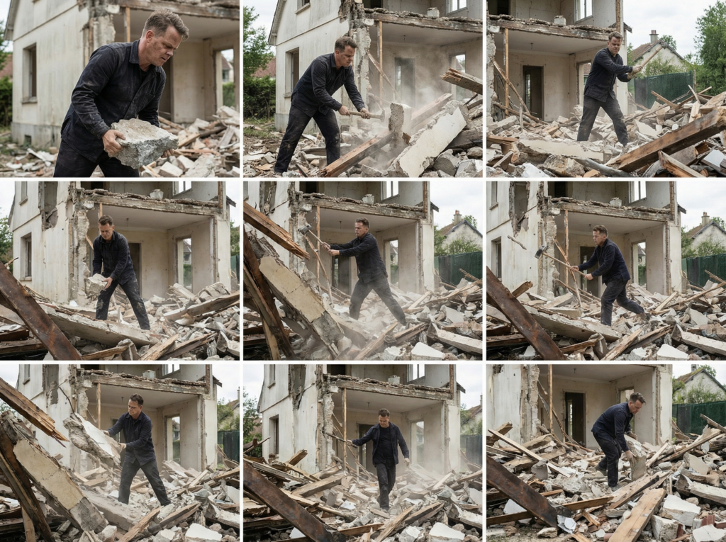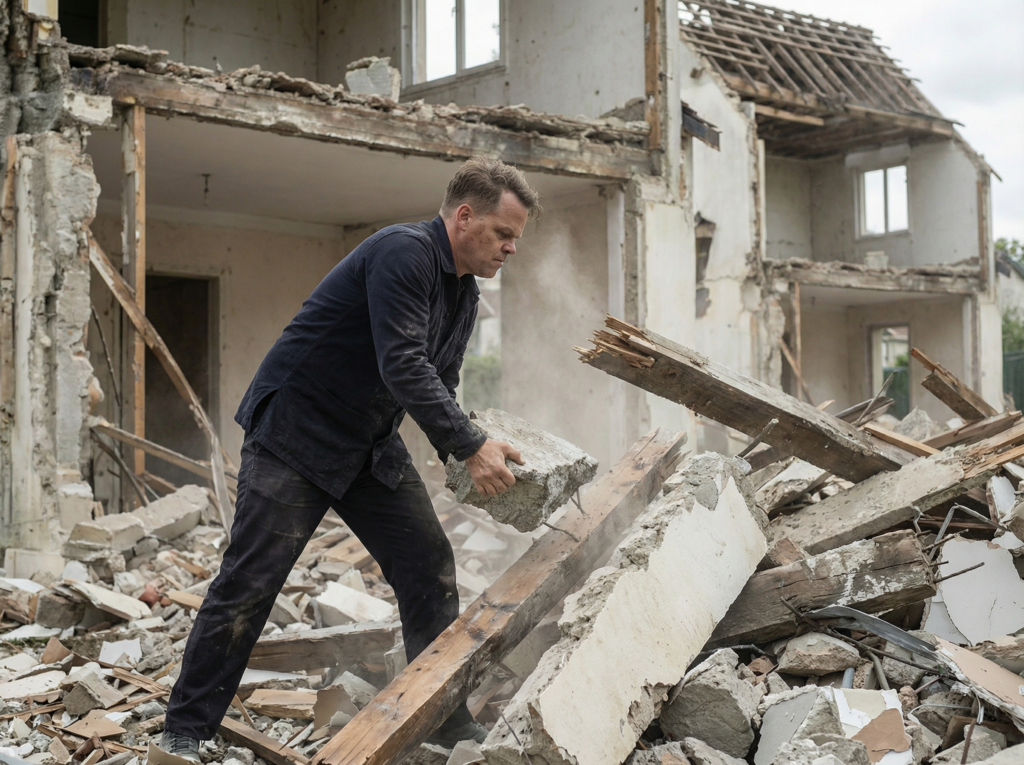 Démolition 11/2017 Architecture of anonymous, Dislocation of the ruins, Performance Démolir une maison avec les matériaux issus de l’effondrement de cette maison elle-même Demolishing a house with the materials resulting from the collapse of this house itself destruction dislocation house Construction materials feedback loop