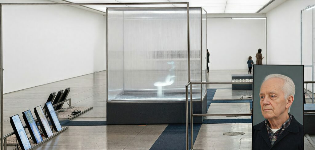 Cette installation propose une projection spéculative dans un futur où le discours sur l’innovation technologique sera devenu obsolète. Au centre de l’œuvre, un avatar numérique de l’artiste, généré en 3D temps réel grâce à un moteur de jeu vidéo, incarne le dernier représentant de cette rhétorique désuète.