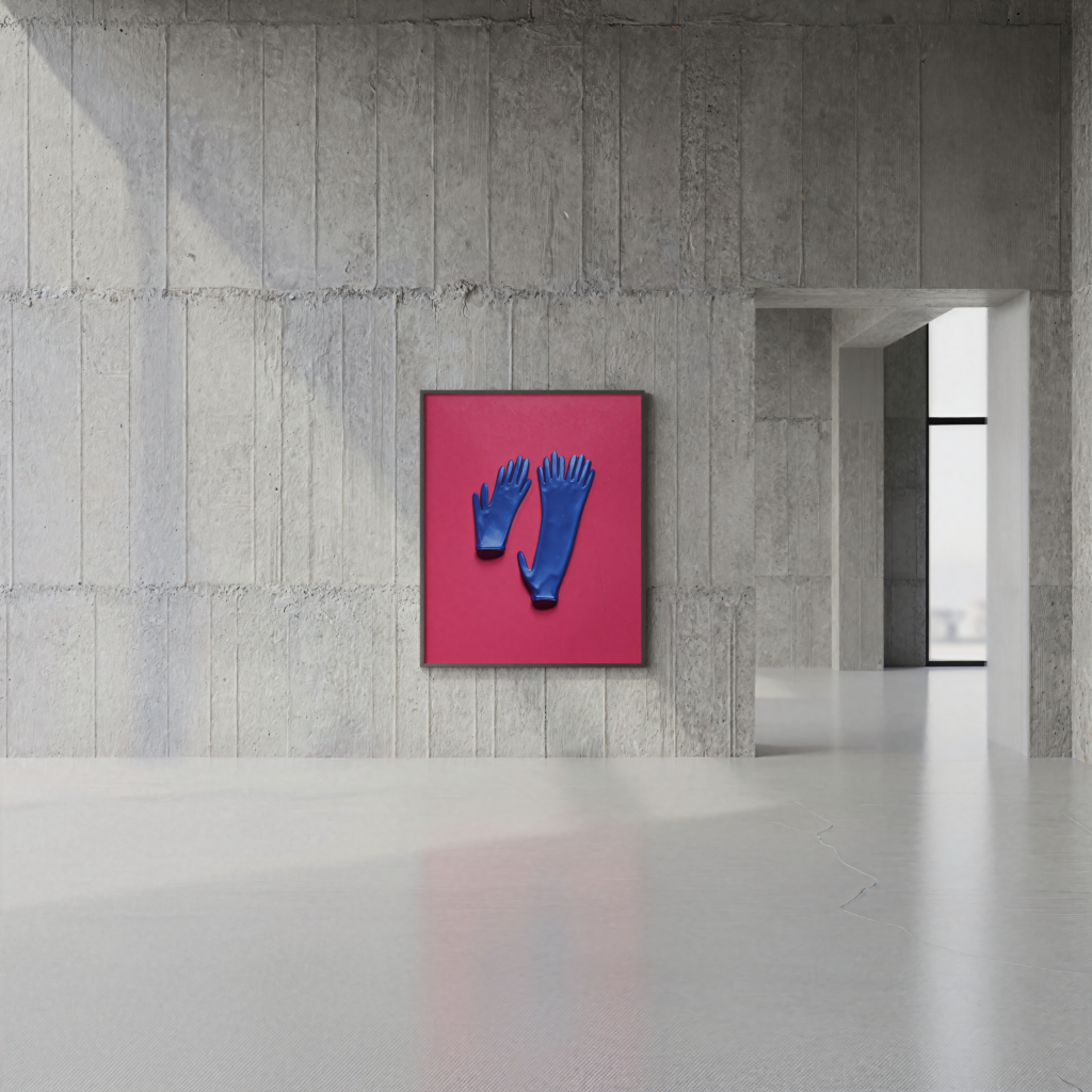 La photographie évoque le concept du gant comme métaphore de l’espace latent des IA – une forme vide attendant d’être remplie par nos projections. Cette analogie fait écho à la tradition philosophique depuis Aristote, qui conçoit la main comme l’organe nous projetant vers l’extérieur et transformant la technique tout en étant transformée par elle.