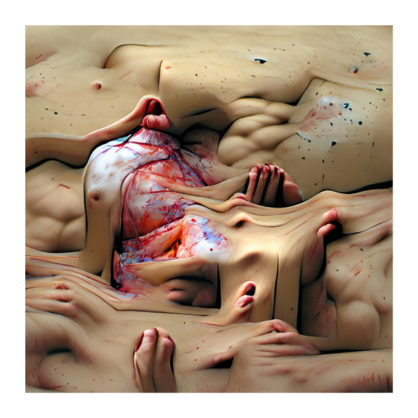 The artist has programmed an AI capable of interpreting fragments of this text in the form of images by combining, transforming and dismantling a stock of existing images consisting of 14 million documents. The images thus produced are cultural syntheses, images of images according to a monstrous recursivity which is similar to the body that Lyotard tries to make emerge from his writing. The images follow one another, as if disconnected from a text that retains all its autonomy.