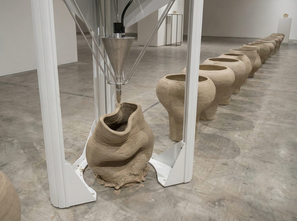 Earth is a plasticity on the verge of destruction, inventing a new relationship between the processes of natural formation (in particular the erosion that sculpts the planet) and technical processes.