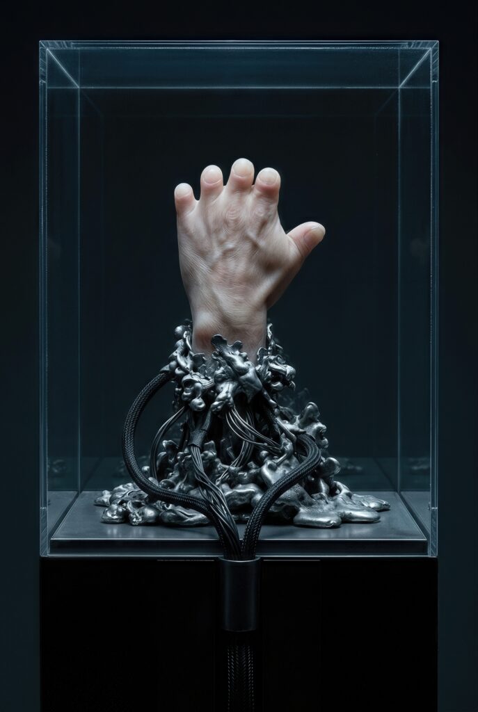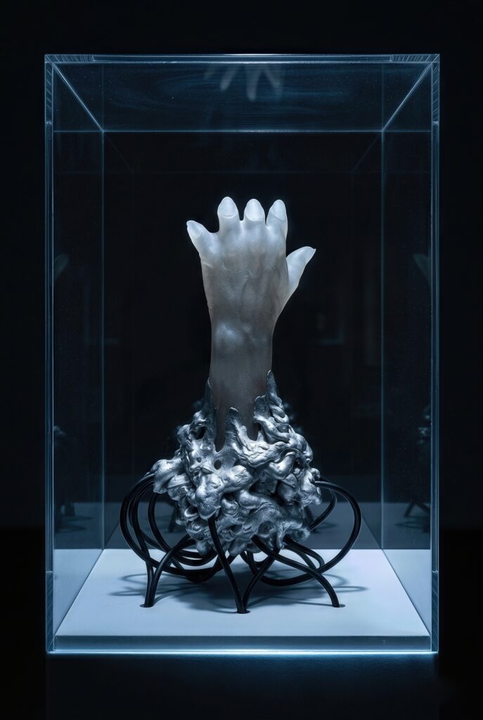 On soustrait les phalanges des doigts afin de transformer le statut de la main qui n’est plus préhensible mais purement tactile. La main ne peut plus rien saisir, elle ne peut que sentir. Les procédés utilisés sont photographiques ou impliquent l’impression 3D : la main de l’artiste est numérisée puis, dans un logiciel, on retire les phalanges afin d’imprimer le résultat.