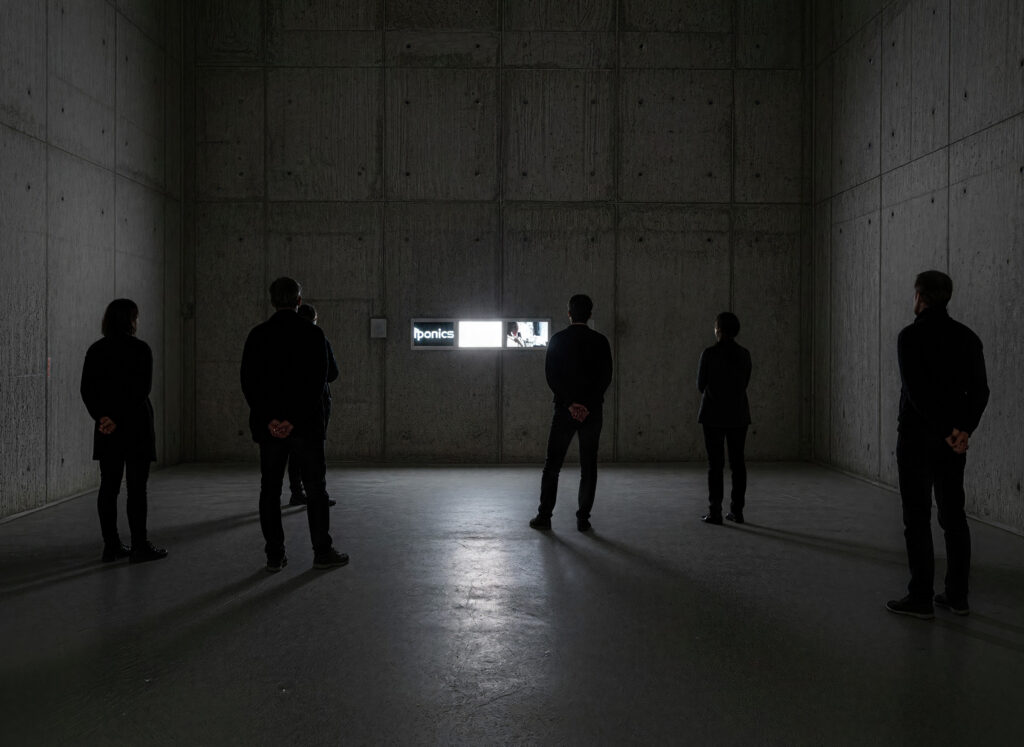 The work follows in the tradition of the Nouveau Roman, confronting it with contemporary digital technologies. By orchestrating the encounter between a text generator and heterogeneous media flows, the artist offers a fragmented and random narrative that questions modes of narrative production in the age of networks and algorithms.