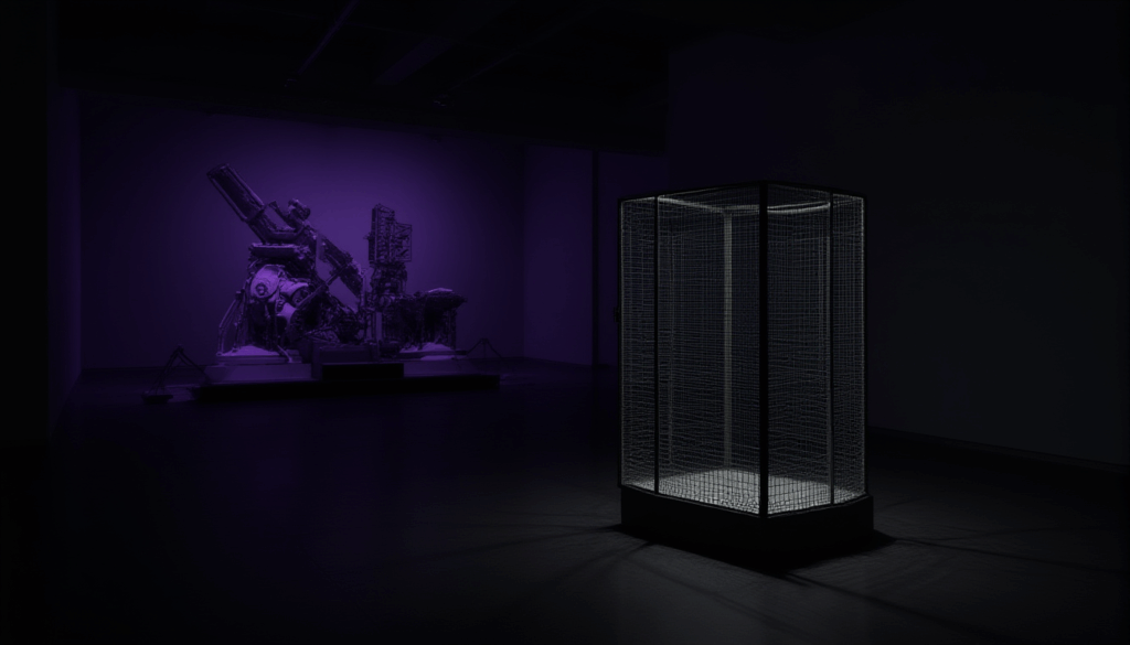 Cette installation projette le spectateur dans un futur post-humain où une espèce inconnue découvre les vestiges de notre civilisation disparue. L’œuvre se déploie comme un musée archéologique futuriste consacré à l’humanité éteinte.