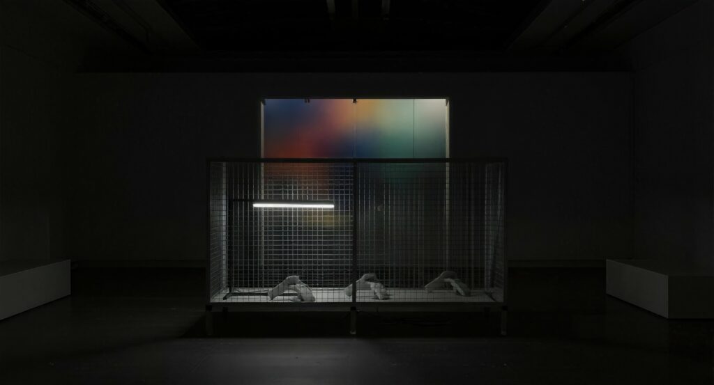 This installation projects the viewer into a post-human future where an unknown species discovers the remnants of our vanished civilization. The work unfolds as a futuristic archaeological museum dedicated to extinct humanity.