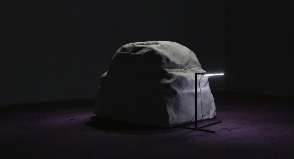 Telofossils extends Chatonsky’s reflection on extinction and explores the relationships between digital technologies, collective memory, and consciousness of disappearance. The work invites meditation on the legacy that humanity will leave in future geological layers.