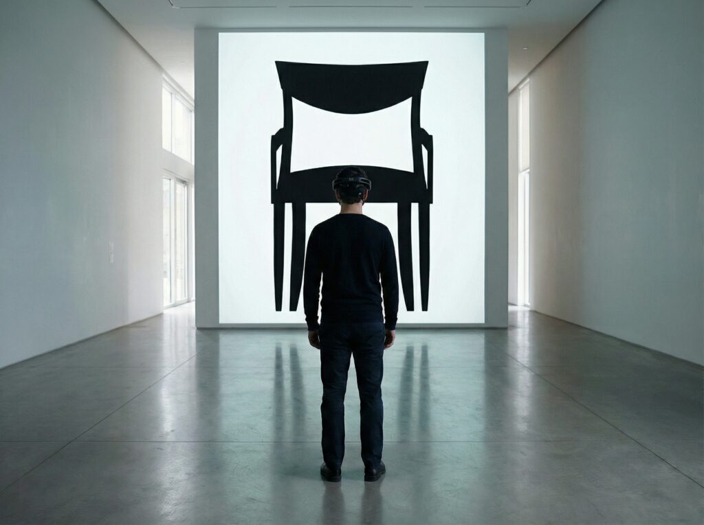 A brain reader detects the mental activity, visitors can dislocate digital chairs by focusing.