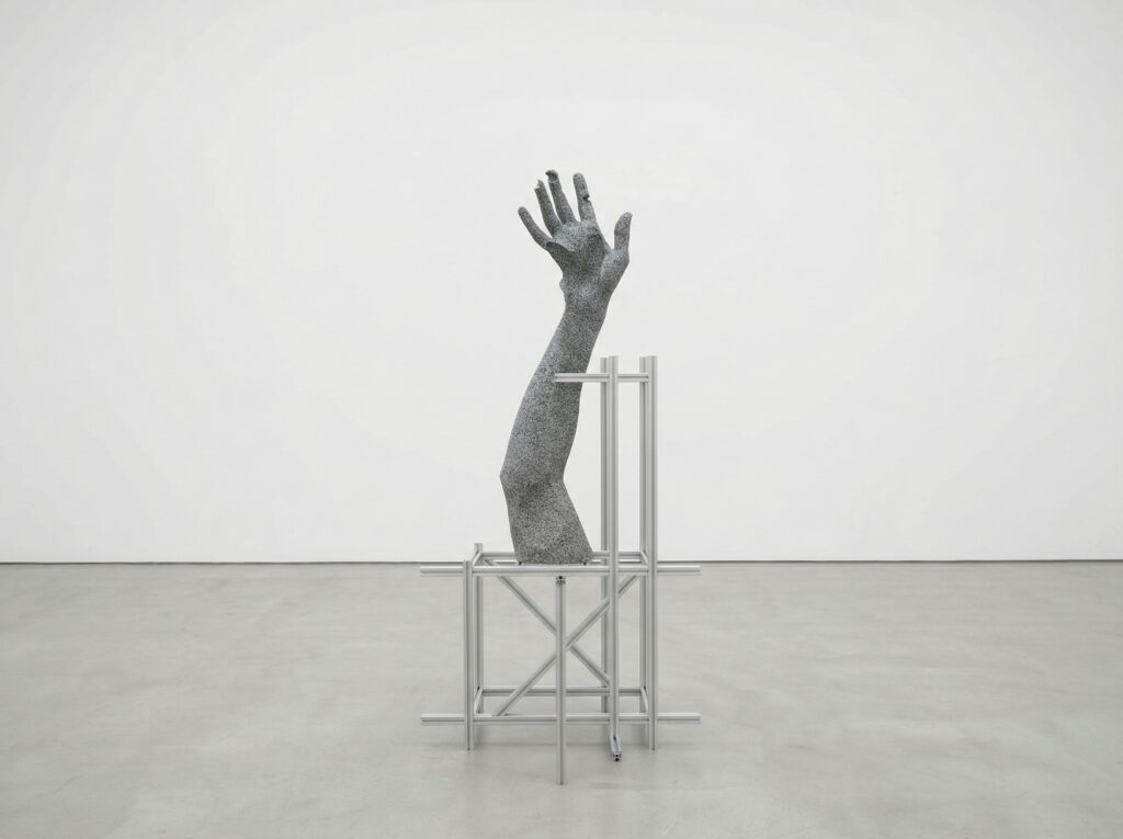 Cette œuvre propose une réflexion sur la dualité entre le matériel et le numérique à travers une sculpture imprimée en 3D représentant une main dont une partie a été soustraite par la forme d’une autre main. Cette seconde main, absente physiquement, existe sous forme de NFT (jeton non fongible) dans l’espace numérique.