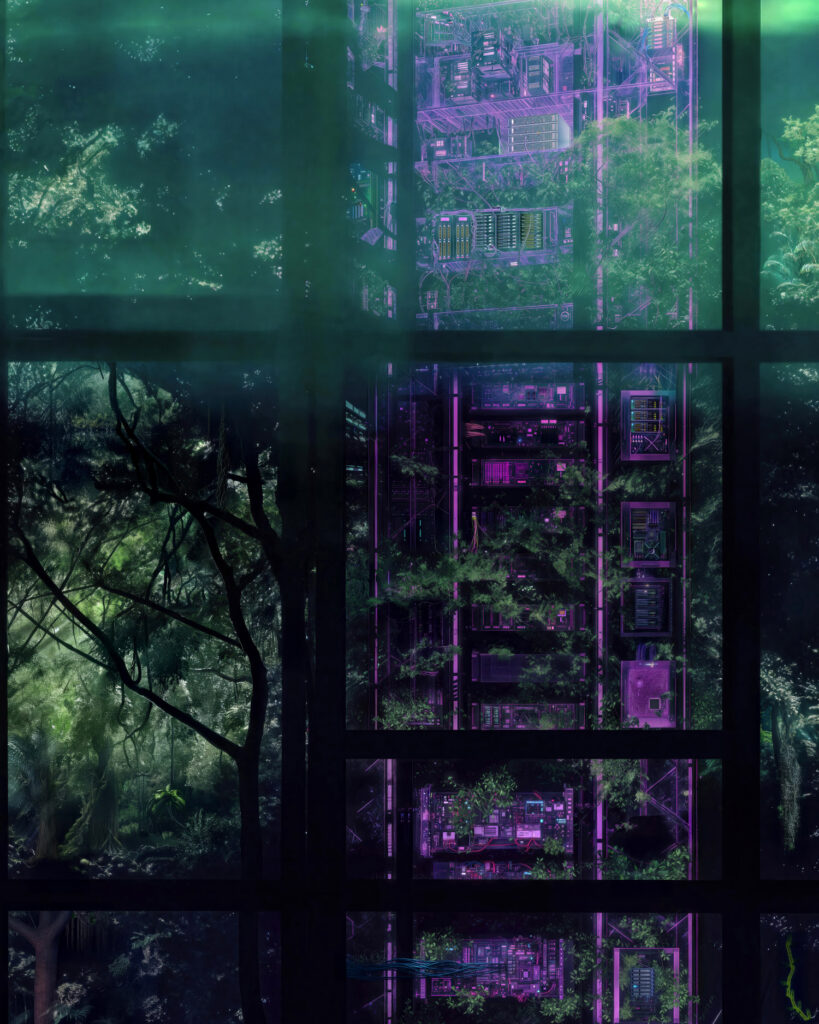 The Interside 01/2025 Artificial imagination, Photo Photographie sur aluminium datacenter landscape architecture innovation nature forest paysage environnement hybridation extractivisme symbiose infrastructure numérique serveurs forêt tropicale