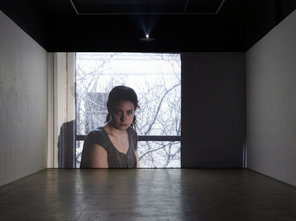 This video installation shows a young woman moving around her bedroom, exhibiting varying states of health that oscillate between improvement and deterioration. Her behavior—difficult breathing, moments of relaxation, movements and collapses—seems to respond to a mysterious logic that escapes the first glance.