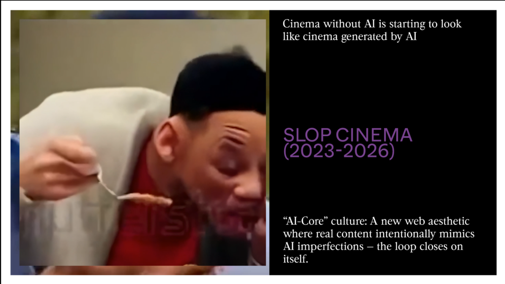 In parallel, web culture has seen the rise of the “IA-Core” movement, in which reality imitates the imperfections of AI.