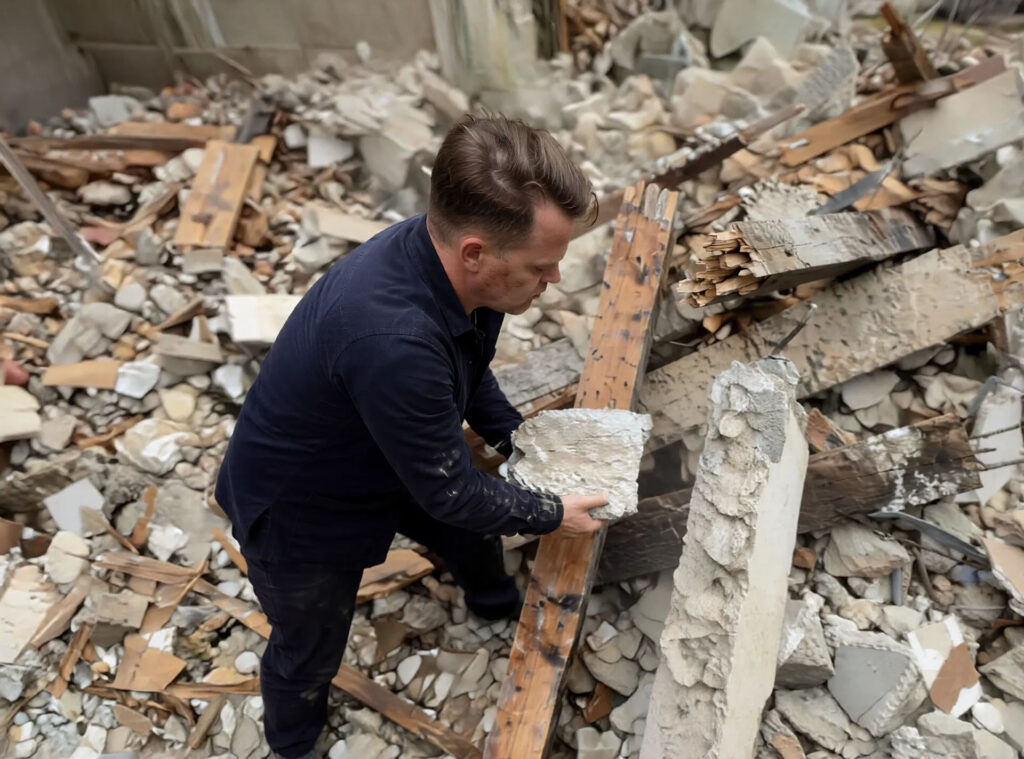 Démolition 11/2017 Architecture of anonymous, Dislocation of the ruins, Performance Démolir une maison avec les matériaux issus de l’effondrement de cette maison elle-même Demolishing a house with the materials resulting from the collapse of this house itself destruction dislocation house Construction materials feedback loop