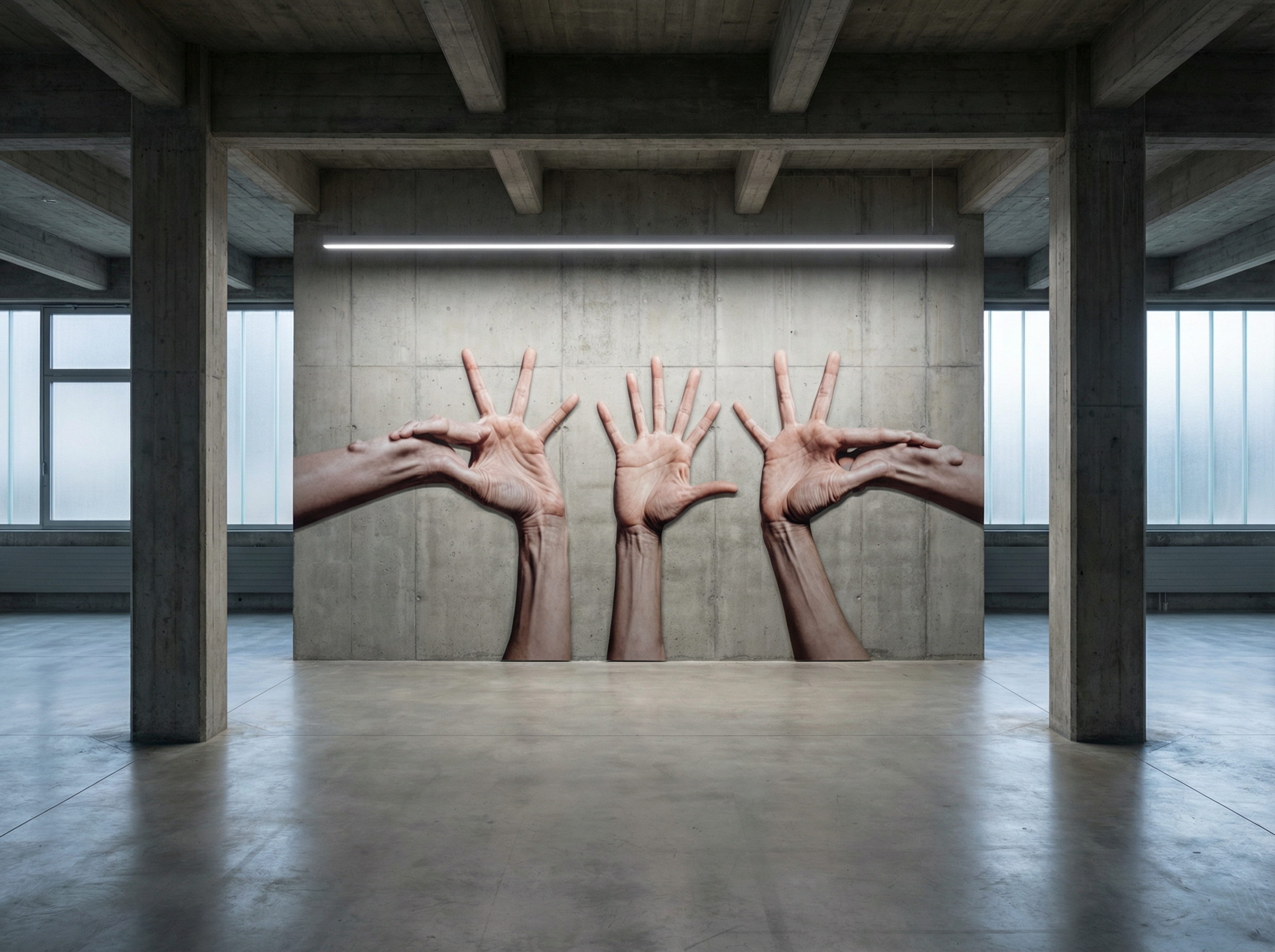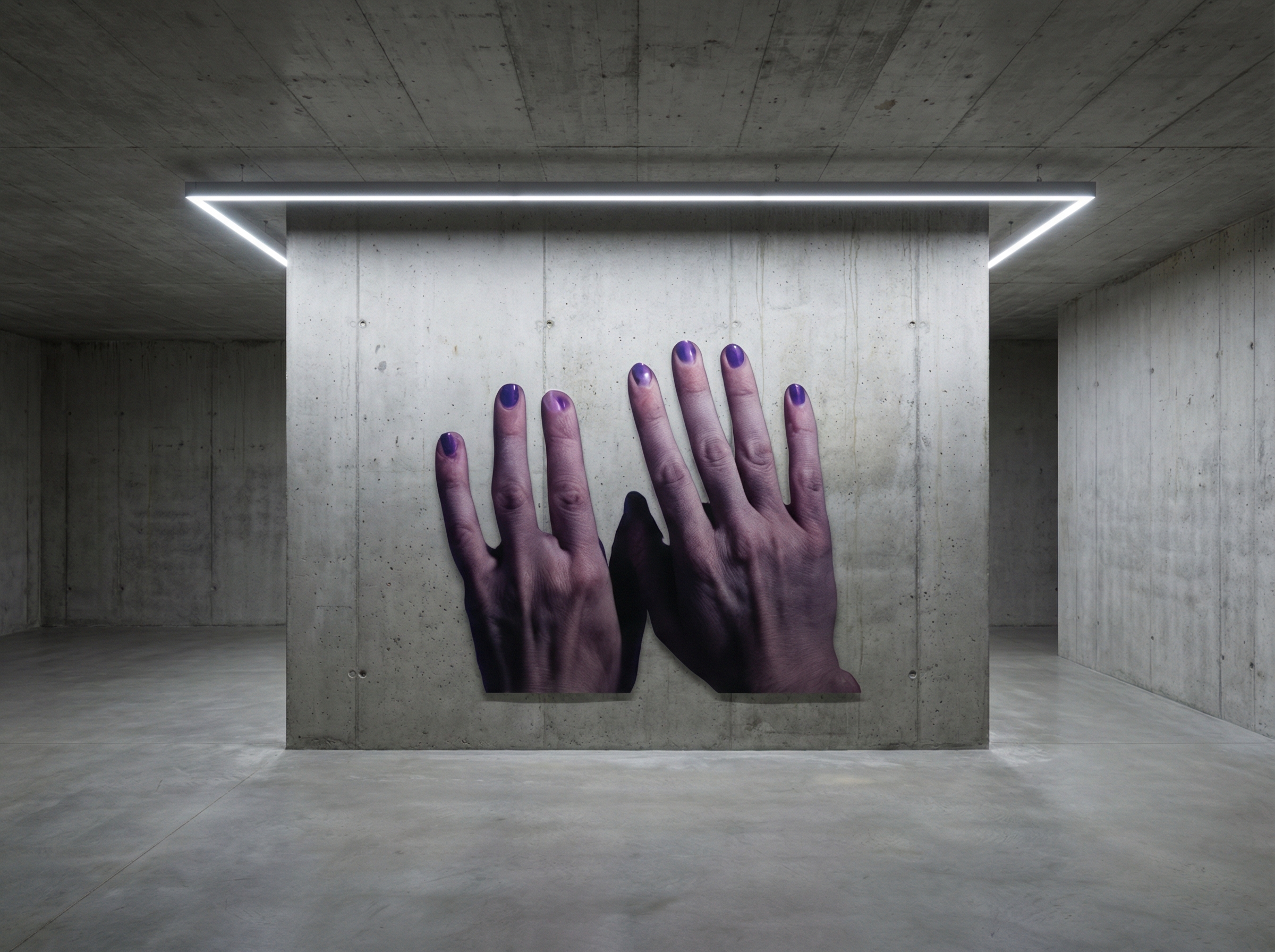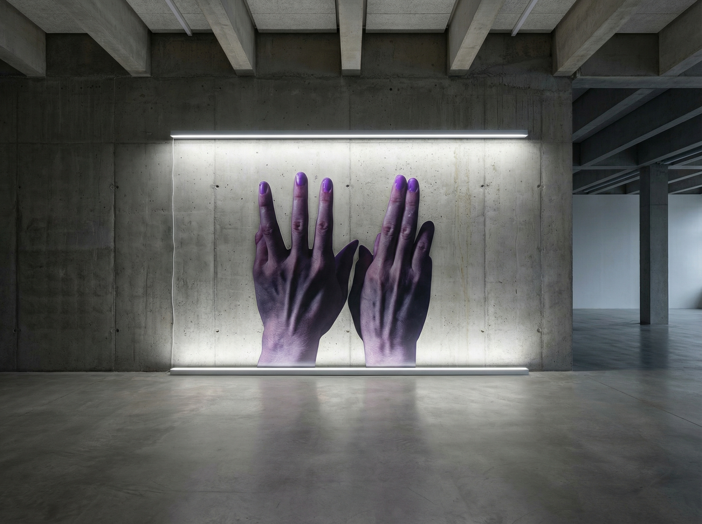 L’artiste a entraîné un système d’IA à produire des images de mains dans diverses positions contre des fonds monochromes, créant une étude à la fois anatomique et conceptuelle. Les mains apparaissent tantôt étirées, déformées ou multipliées, comme si l’algorithme explorait les limites de la symétrie bilatérale et de l’asymétrie fonctionnelle de ces organes.
