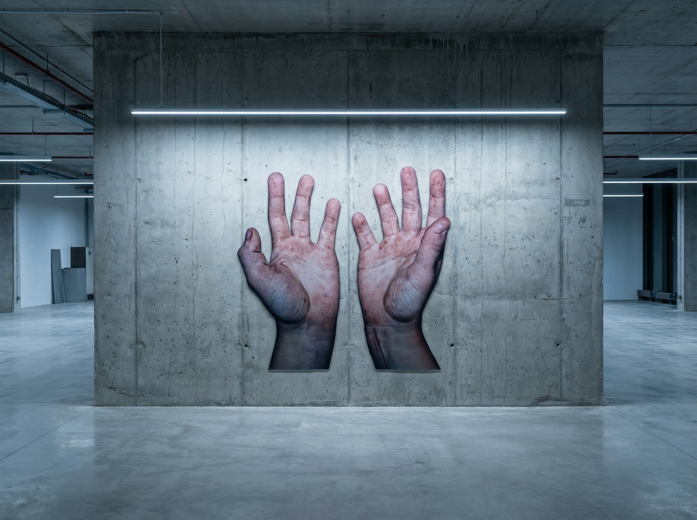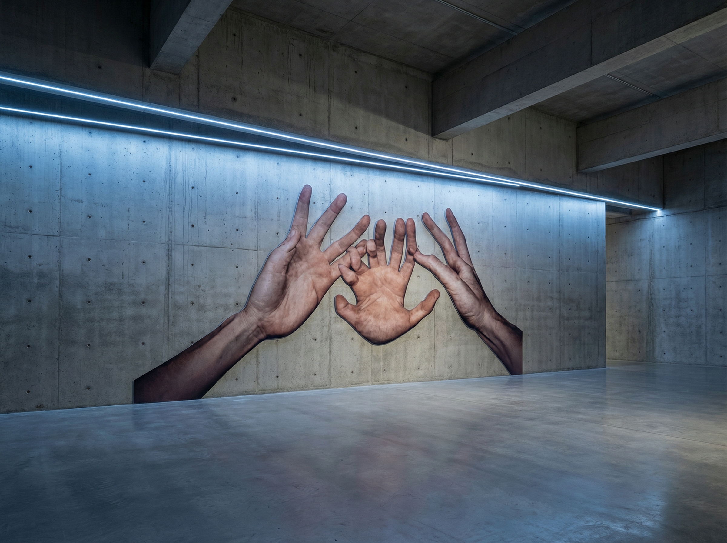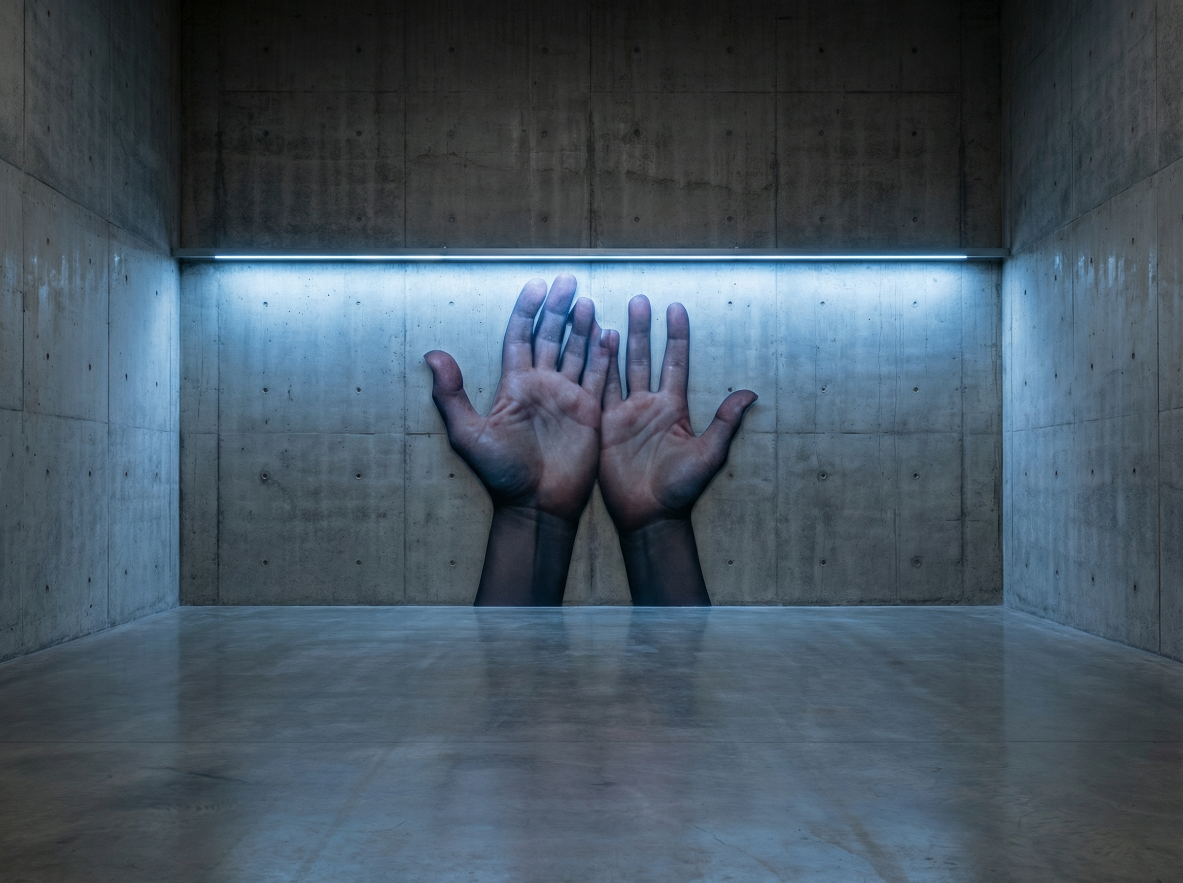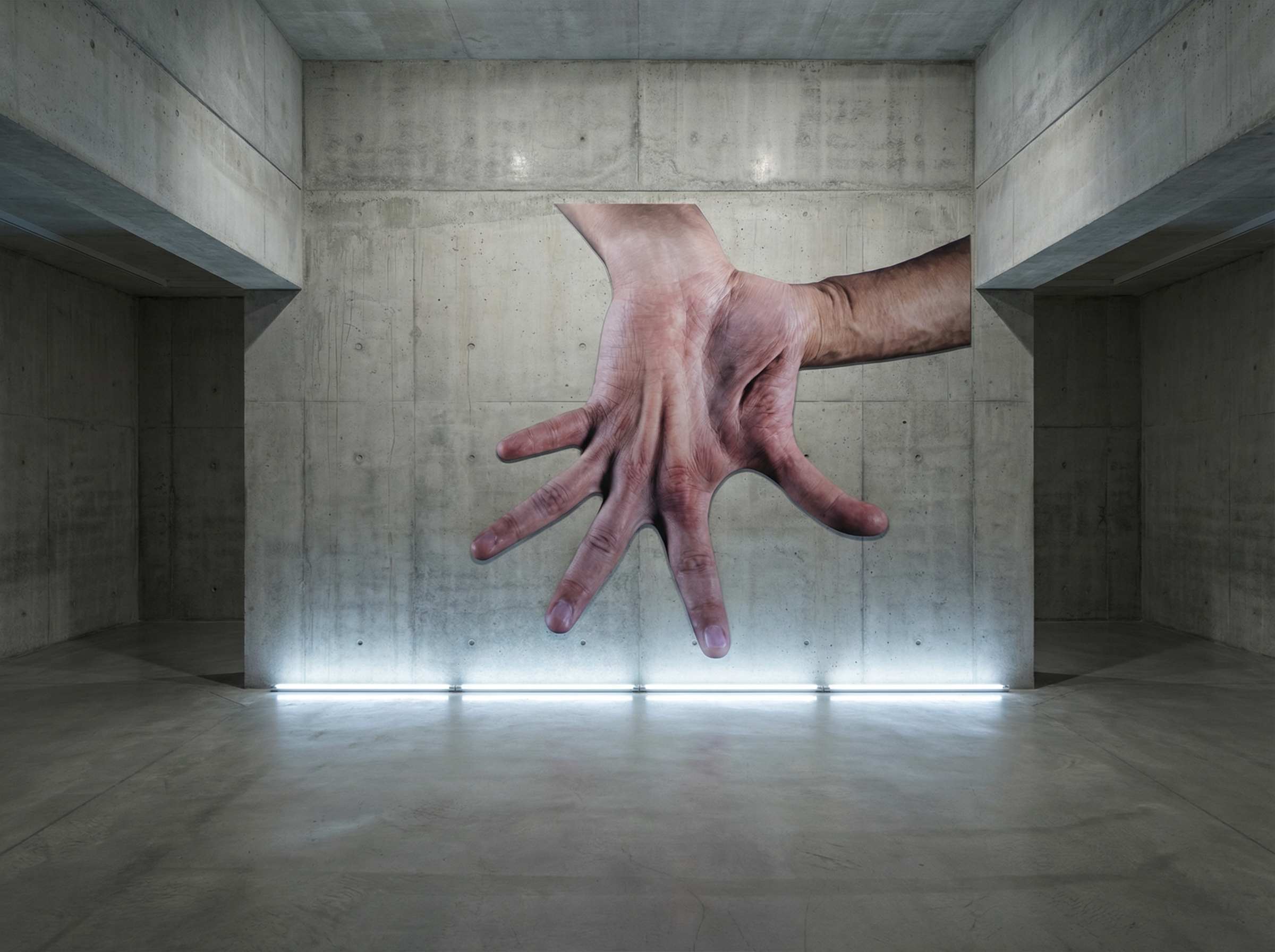 L’artiste a entraîné un système d’IA à produire des images de mains dans diverses positions contre des fonds monochromes, créant une étude à la fois anatomique et conceptuelle. Les mains apparaissent tantôt étirées, déformées ou multipliées, comme si l’algorithme explorait les limites de la symétrie bilatérale et de l’asymétrie fonctionnelle de ces organes.