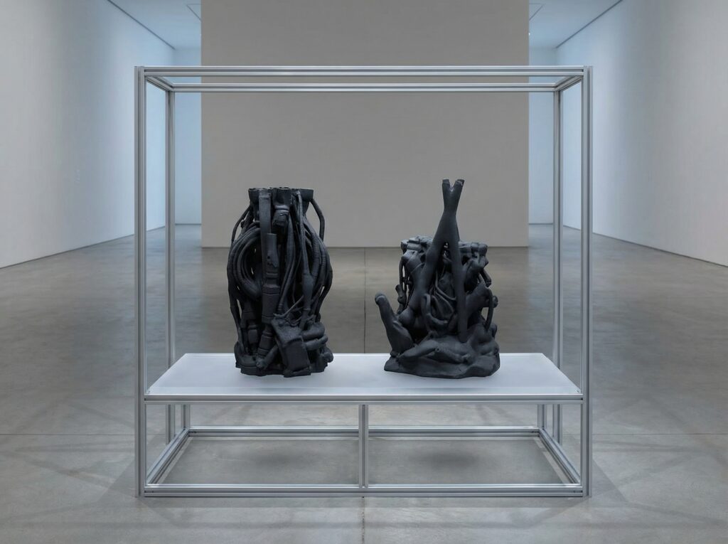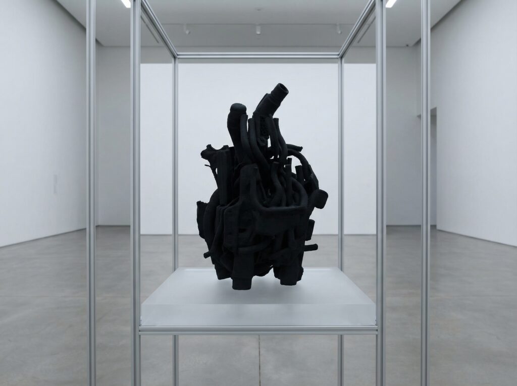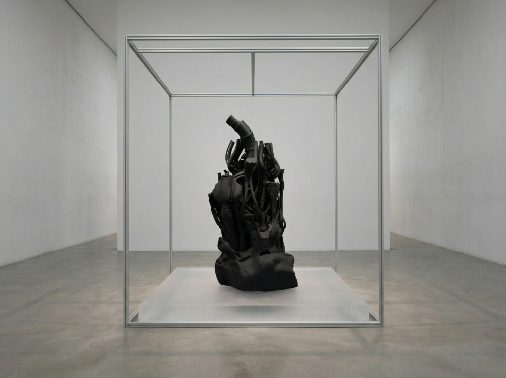 Des machines écorchées, ouvertes. Fils apparents, laocoon, fragments d’un dispositif plus grand, organes sans corps. Inciser le “corps” des machines, exhiber l’intérieur, sans secret. Plonger ces éléments dans le pétrole, un matériau anonyme secrétant les organismes disparus.