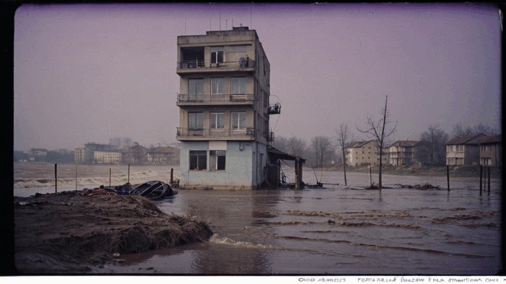 The images describe a city submerged by floods, infiltrated by flows. But these flows are not only liquid: they carry data, fragments of digital memory that seep into every corner of the city.