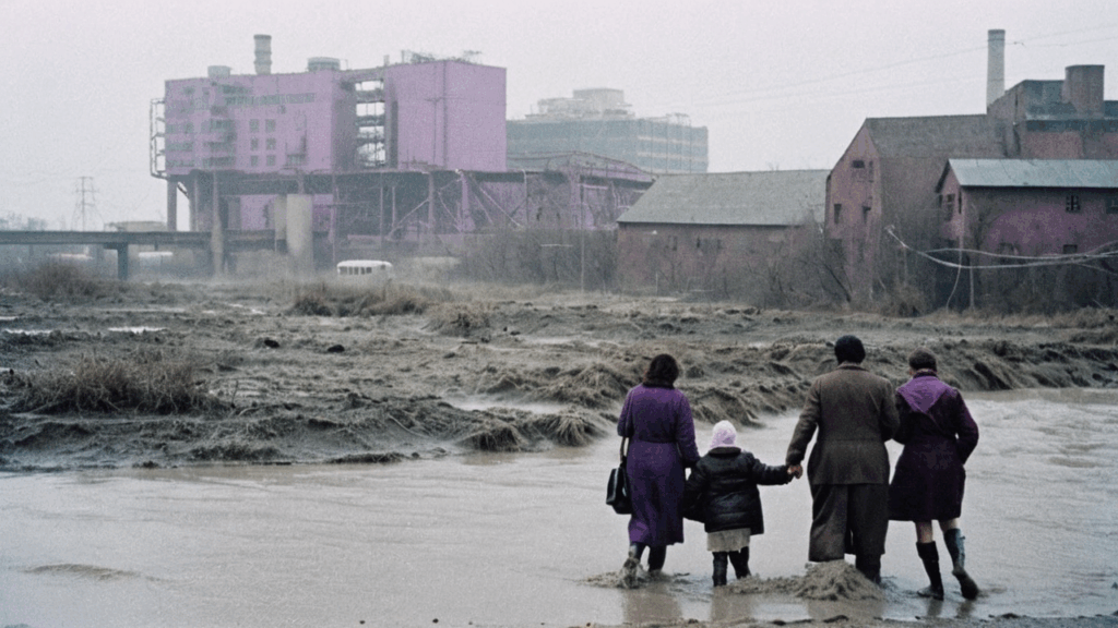 Les images décrivent une ville submergée par les flots, infiltrée par les flux. Mais ces flux ne sont pas seulement liquides : ils charrient des données, des fragments de mémoire numérique qui s’infiltrent dans chaque recoin de la cité.