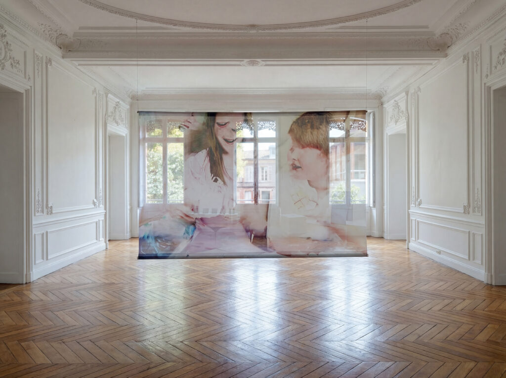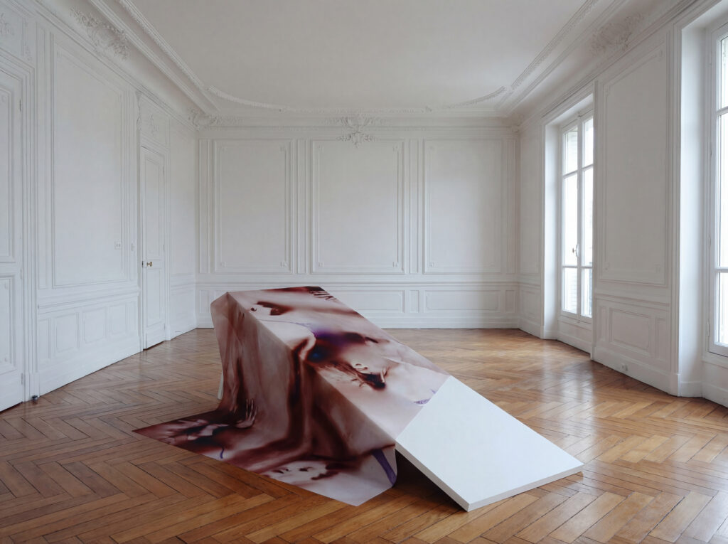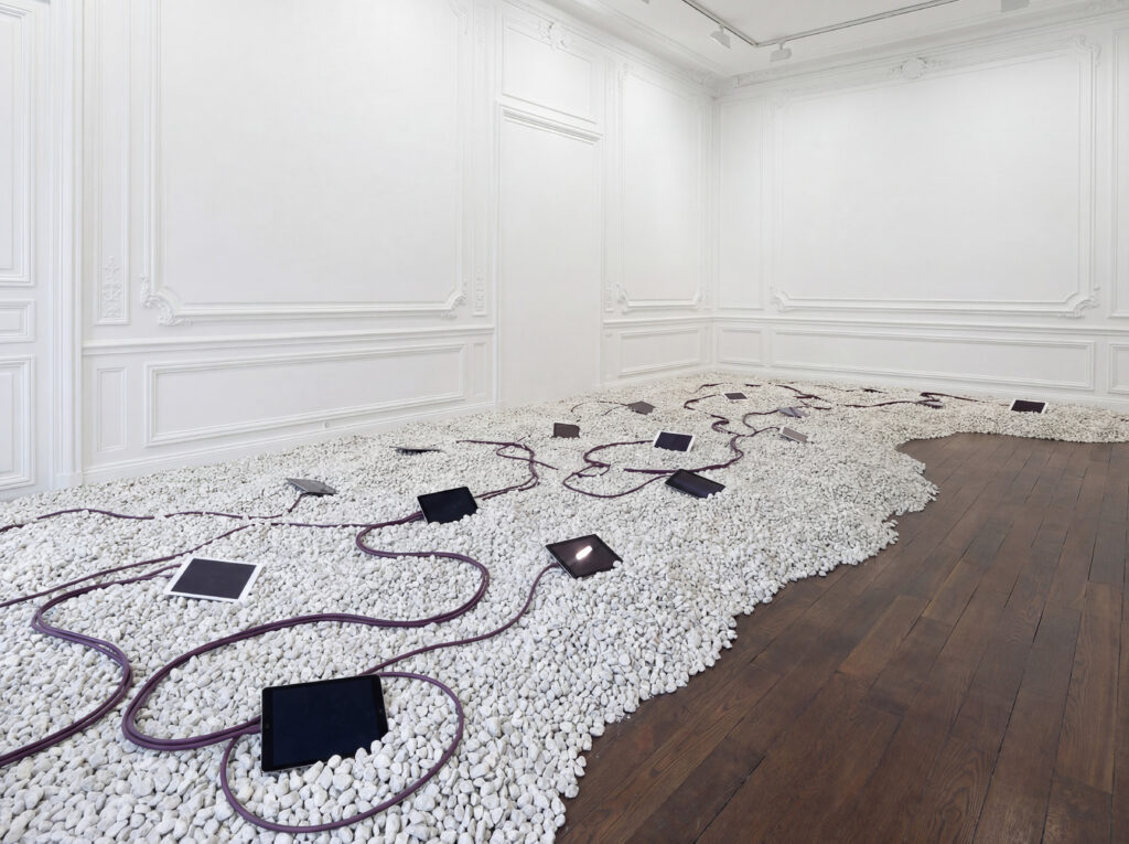 L’installation se compose d’une vidéo, d’images grands formats et de différents objets.