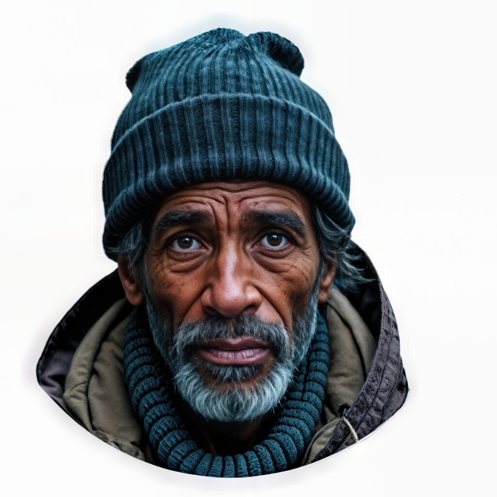 These formulations are revealing. One sees clearly the process of adjustment at work: not too dirty, not too damaged, not too frightening. It must evoke the street, but without really showing the violence of the street. It must suggest precarity, but without real filth, without wounds, without traces of mental illness or addiction, without everything that would make the image truly unbearable. One imagines the creation process: the agency generates dozens, perhaps hundreds of images. Some are doubtless too “clean,” don’t look enough like “homeless.” Others are perhaps too “dirty,” too harsh, too disturbing for the advertising space of the metro. One must find the happy medium, the aesthetic sweet spot: enough signs of precarity for the message to get through, but not to the point of truly shocking the public, of making them uncomfortable, of disturbing their daily commute. What was the selection criterion? What type of representativity was sought? And above all: who validated these choices? Did Samu Social, an organization that works daily in contact with real homeless people, participate in this selection? If so, according to what ethical and aesthetic criteria? Did they compare these synthetic images to the reality of the people the organization supports? Did they ask people in street situations what they thought of these representations?