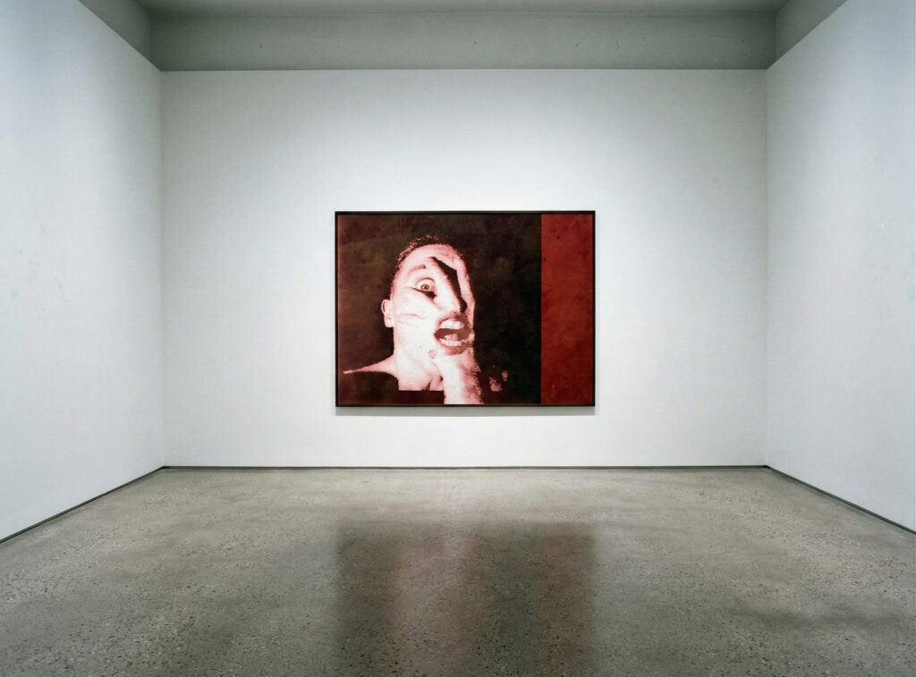 T’es toi 01/1989 Without me, Painting Acrylic paintingCanvas 80x60cm Image made on Amiga 2000 from a video scanning. An acrylic painting was made from the print. Peinture à l’acrylique fut réalisée à partir d’un tirage réalisé sur Amiga 2000 à partir d’une numérisation vidéo face artist teen portrait autoportrait visage peinture amiga surréalisme