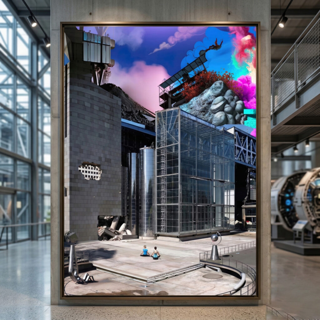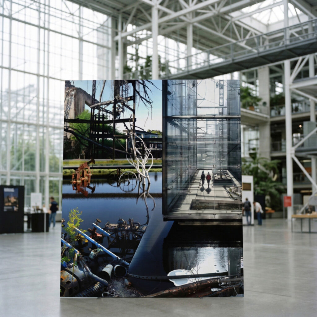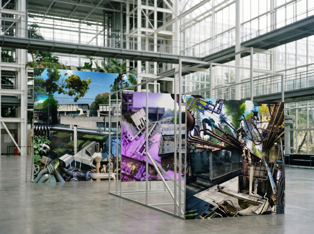 Les vues imaginaires (Cité des Sciences et de l’Industrie) 09/2022 Artificial imagination, Dislocation of the ruins, Photo Vue imaginaire de la serre centrale de la Cité des Sciences et de l’Industrie en ruines (2022)