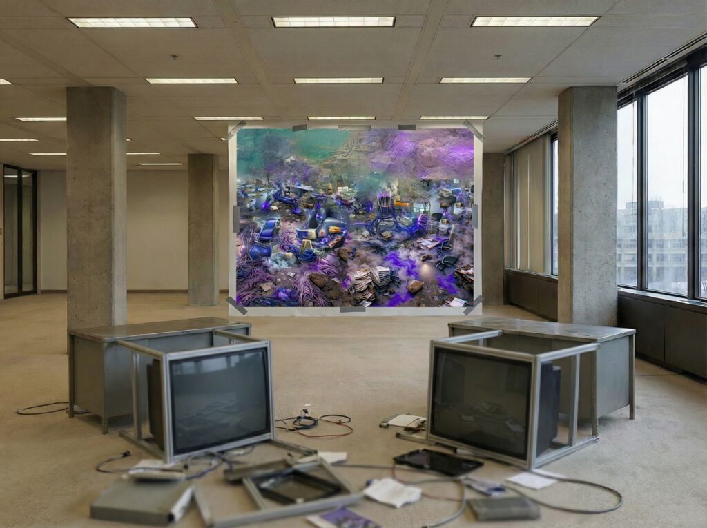Workplace problems 06/2021 Artificial imagination, Extinction, Architecture of anonymous, Organs without body, Dislocation of the ruins, Photo détail détail détail 125x125cm